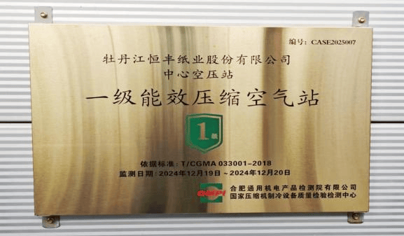 3.空压站创行业首例认证。通过选用高效节能主机、优化管网设计、引入智能联控与变频技术,空压站综合能效达到国内领先水平,成功通过国家一级能效认证,成为黑龙江省工业领域首个、中国造纸行业首例获此殊荣的项目。