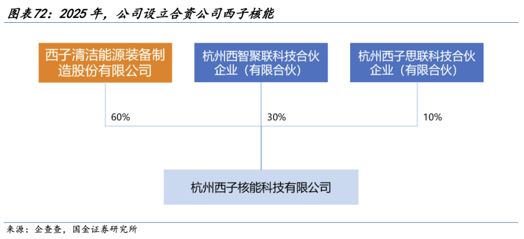 建设新工厂,成立新平台,提升核电产品制造承接能力。2025年,公司推进崇贤制造基地核电专用清洁车间建设。该车间规划面积6480平方米,严格按核级设备制造标准建设,可承接核级压力容器、储罐、换热器等高端产品制造。项目分两期推进,一期2025年9月已建成投产。此外,2025年8月,公司设立合资公司西子核能,西子核能不仅承载着核电设备成套及工程技术研发的核心使命,更标志着公司将核电产业作为重点发展方向的战略决心从常规岛拓展到核岛领域。